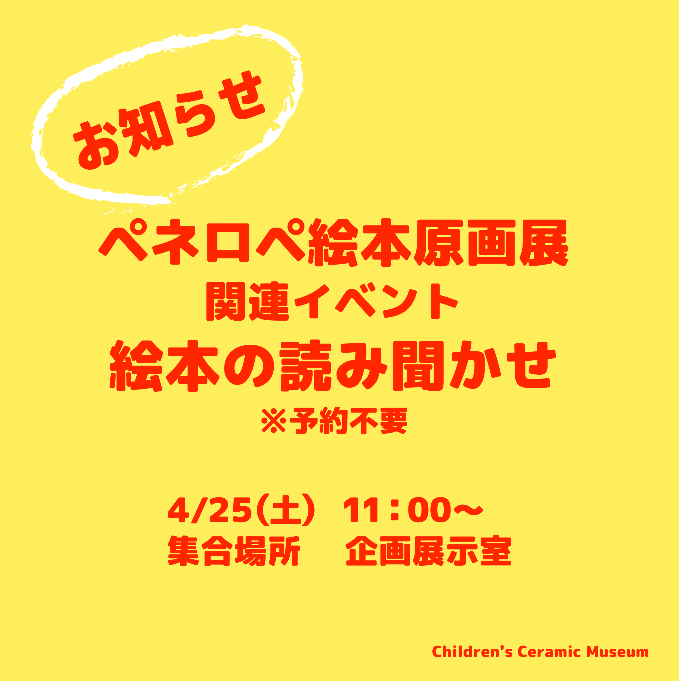 ■内容:ペネロペ展に併せ、絵本の読み聞かせを企画展示室で行います。絵本は当日のお楽しみ♪